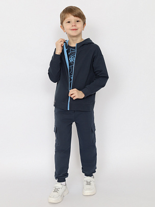 Костюм для мальчика (толстовка, брюки) индиго-оранжевый