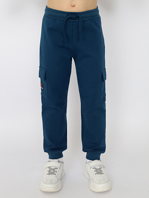 Брюки с притачным поясом и манжетами. Пояс из основного полотна и эластичной резинкой внутри. Низ брюк с притачными манжетами из полотна с добавлением лайкры. Задняя часть декорирована принтом "Реальный".
