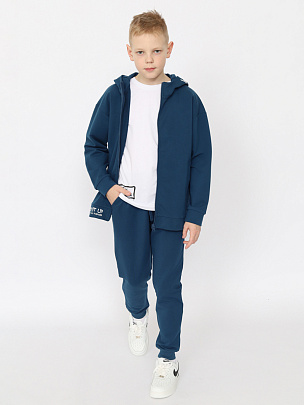Костюм для мальчика (толстовка, брюки) темно-серый-голубой
