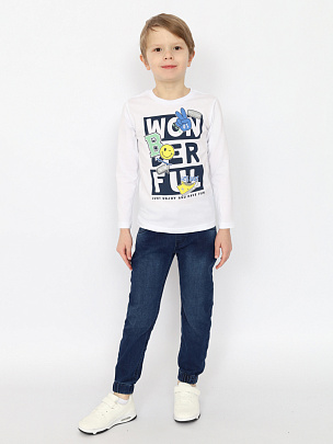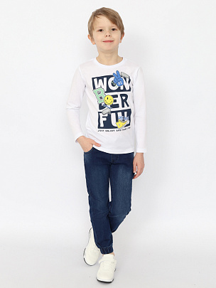 Джемпер с длинным втачным рукавом. Воротник из материала с добавлением эластана. Перед декорирован принтом.