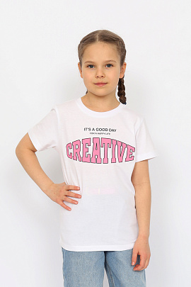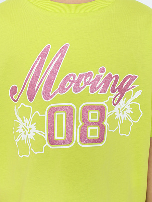 Футболка с ярким блестящим принтом для девочки, выполненная из мягкого хлопкового трикотажа, который прост в уходе, позволяет телу дышать и комфортен в носке. Актуальный крой оверсайз с заниженной линией плеча не сковывает движения, позволяя ребенку быть активным. Модель дополнена круглым вырезом горловины и свободными рукавами длиной до локтя.