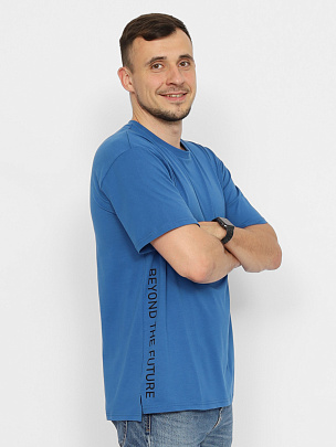 Футболка мужская из кулирной глади. С коротким рукавом. Воротник из эластичной рибаны. На полочке принт (будущее).