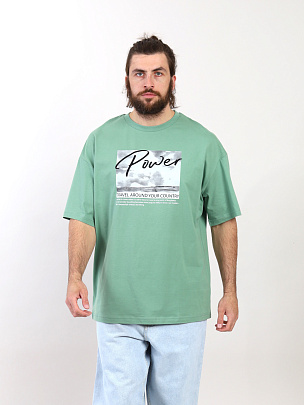 Футболка мужская из кулирной глади. С коротким рукавом. Воротник из эластичной рибаны. На полочке принт (будущее).