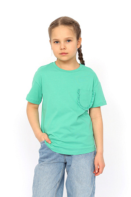 Футболка из кулирки с коротким рукавом. В плечевом шве обработана застежка на кнопки. Горловина обработана притачной бейкой из рибаны с лайкрой. Перед декорирован принтом. Шорты из кулирки с целнокроенным поясом.