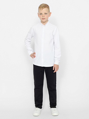 Брюки с притачным поясом из основного полотна и резинкой внутри. На передних половинках расположены карманы и отстроченные стрелки.