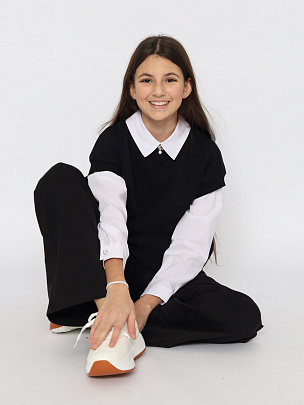 Школьный жилет оверсайз для девочки - это прекрасный выбор для тех, кто ценит комфорт и стиль. Жилет выполнен из мягкого и приятного к телу футера, что обеспечивает комфортное ношение в течение всего дня. Благодаря своему свободному крою и широким проймам модель обеспечивает свободу движений, что делает жилет идеальным для активных девочек. Акцентной деталью этого жилета является разрезы по бокам, которые придают ему оригинальности и удобства в носке. Особенности жилета включают треугольный в...