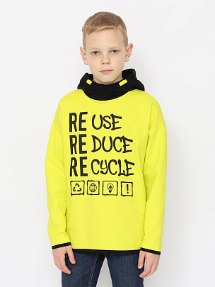 Джемпер мужской прямого силуэта. Круглая горловина обработана узкой притачной обтачкой из рибаны с эластаном. Рукав декорирован принтом.