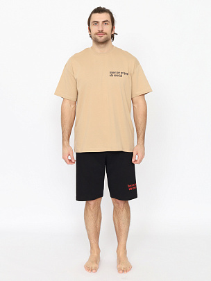 Пижама мужская (футболка, шорты) бежевая